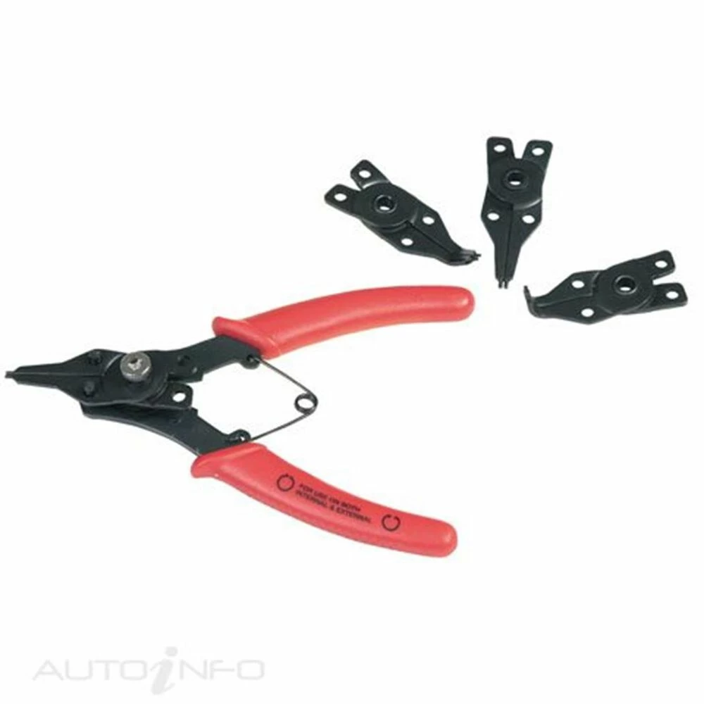 Universal circlip plier set designed for quick tip change. Supplied with straight tips and angled tips 45° and 90°. This circlip plier set is all you need and covers a multitude of applications with large versatility