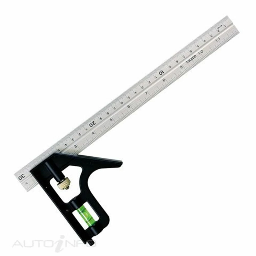 Adjustable and versatile combination square offers a variety of and functions. Very popular tool that is suitable for every DIY enthusiast. Suitable for use as inner or outside try square, mitre square, horizontal, 45° and plumb level, depth and marking gauge and rule