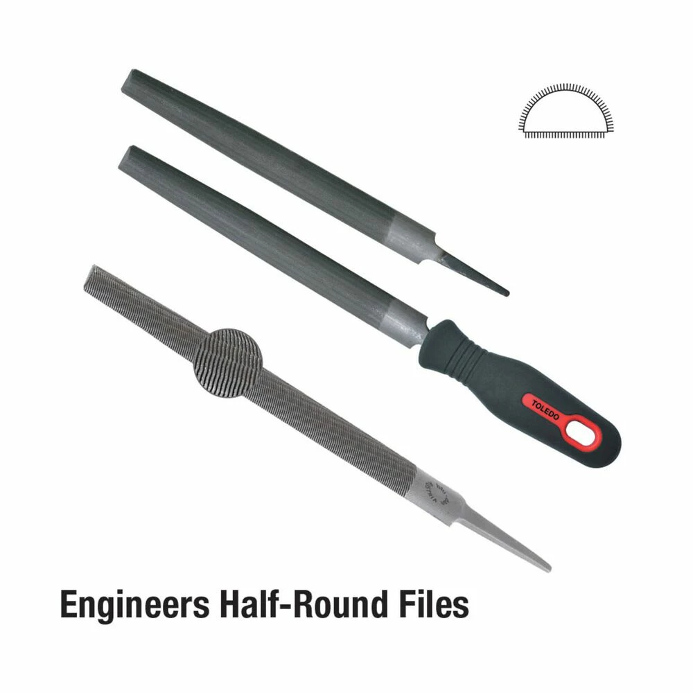 Half round tapered file, double cut on both sides suitable for filing out concave surfaces and crevices as well as rounding out holes. Spiral cut to enable rapid removal of metal whilst leaving a smooth finish. Toledo files are a premium trade quality option and 100% European made using the best materials and workmanship. Toledo files feature precisely cut and hardened deep teeth to provide better performance and longevity. For a better quality file choose a Toledo file.