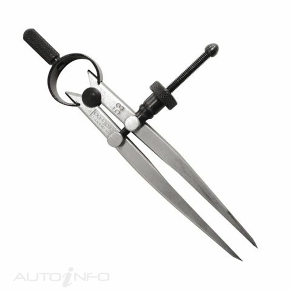 Professional 100mm Spring Divider with two pointed tips used for measuring distances between two points, transferring or comparing measurements directly from a rule, or for scribing an arc, radius or circle. Toledo Spring Dividers are manufactured in Japan to strict standards to ensure accuracy and precision. They provide reliable, quick and accurate measurements during layout procedures and jobs