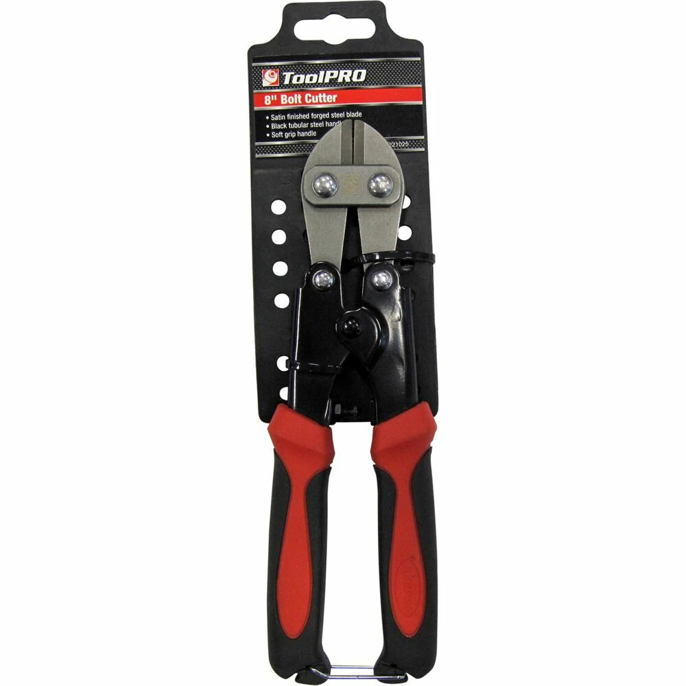 This 8 ToolPro Bolt Cutter comes with a high quality satin finished forged steel blade. These bolt cutters can be used to cut through bolts, locks, chains, fences, heavy metal and more. The uses are plentiful and it’s widely considered a valuable tool for the home, shop or outdoor office. Easy to use, the cutter relies simply on applied force by squeezing the two soft grip handles together with both hands. The design of these units gives you the ability to operate against harder and thicker materials using less effort than may normally be required.