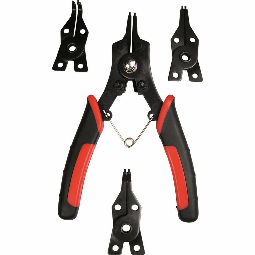 If you need a handy set of pliers around your house, these ToolPRO interchangeable head circlip pliers offer three convertible tips (45, 90, and 180 degrees) to make sure you have the right pliers for the job every time. The jaw tips are easy to exchange, making these pliers useful for a wide variety of household uses.