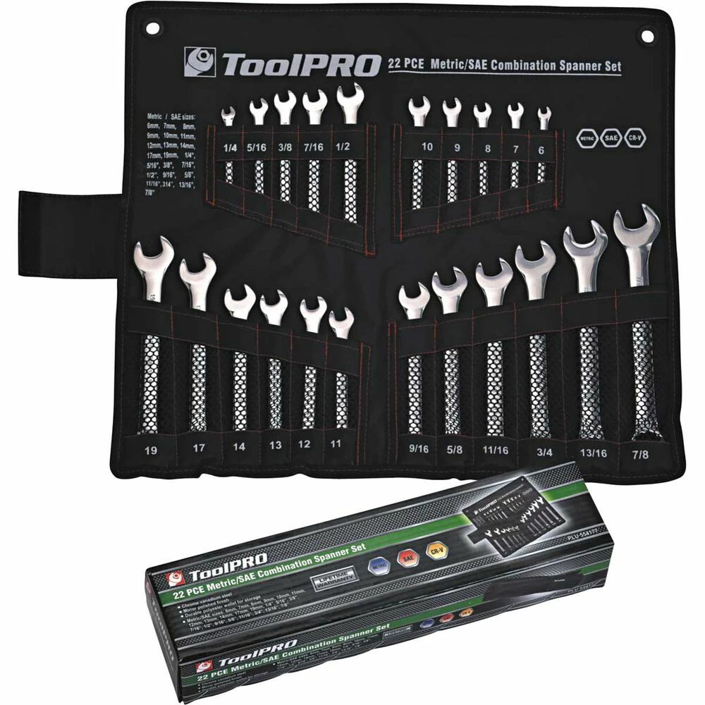 ToolPRO Spanners meet and exceed both DIN and ANSI standards, so you can be sure that they are sturdy enough to tackle any job you need done. And if that wasn’t enough, each spanner comes with a lifetime warranty giving you peace of mind over years of service in the workshop. Supplied in a water resistant nylon spanner roll with steel eyelets to hang on the wall to keep your spanners tidy and organised.